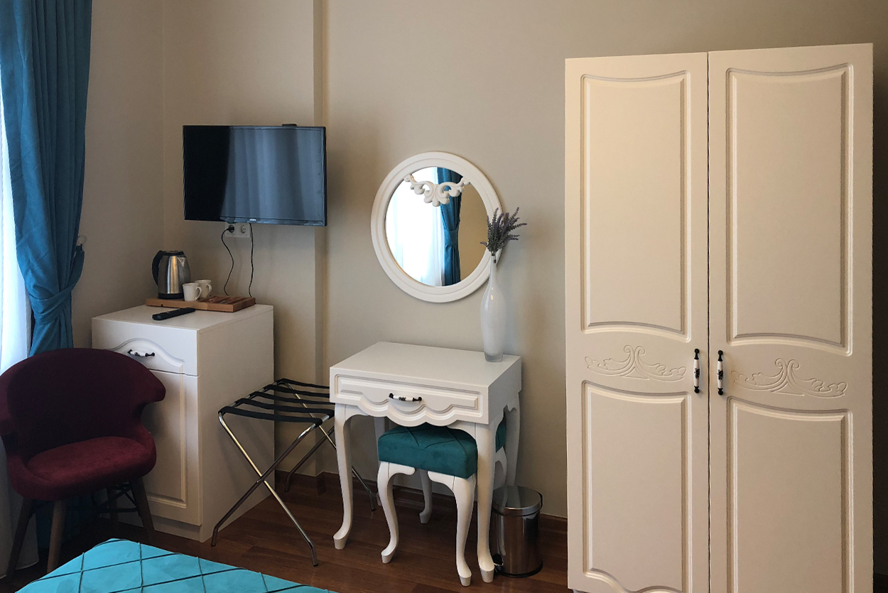 Lcd tv, Air conditioning, Minibar,Satellite TV,Safe,Free Wi-Fi internet connection,Fire Alarm,Telephone in the room, Fully equipped bathroom,Hairdryer,24 hour room service.
